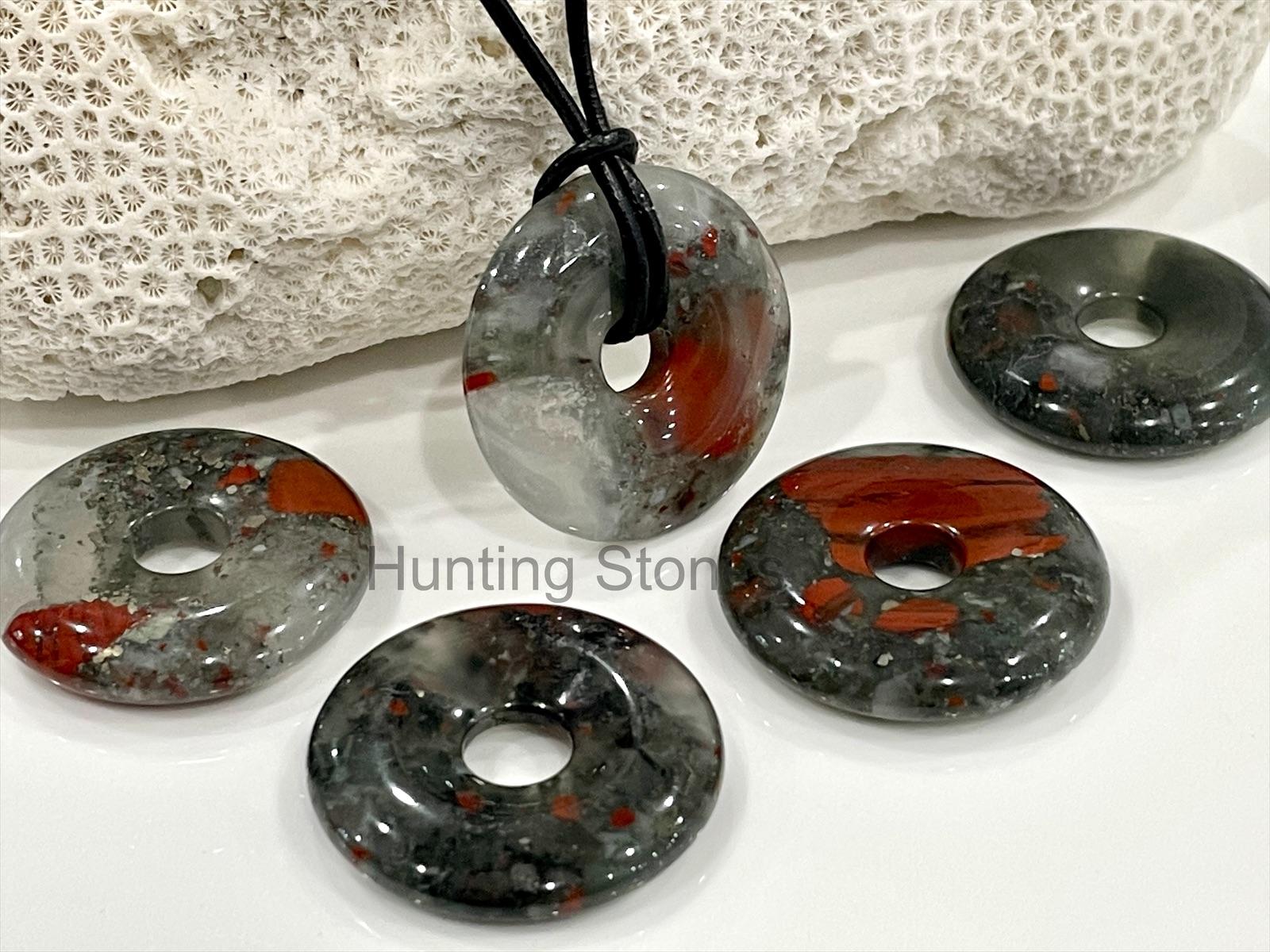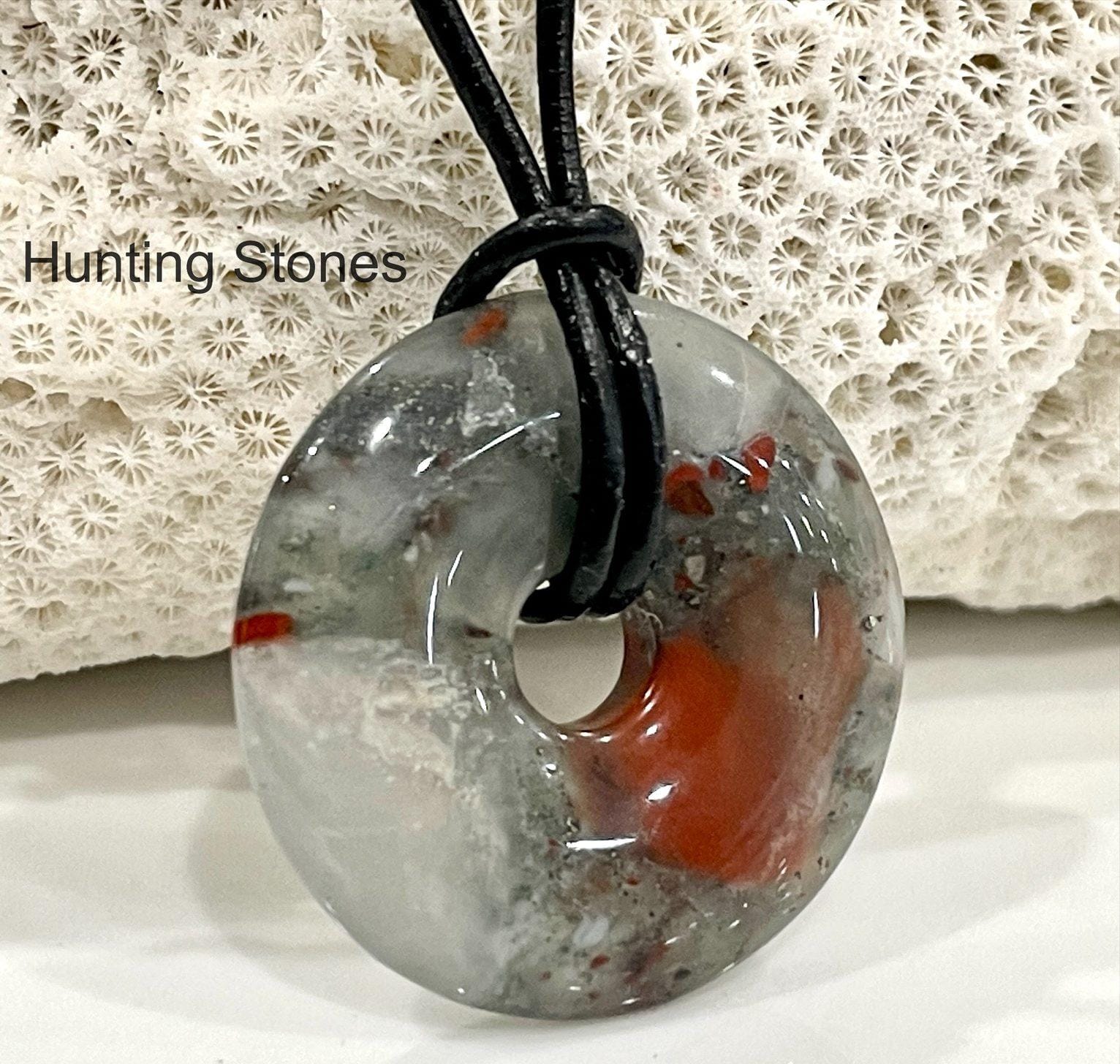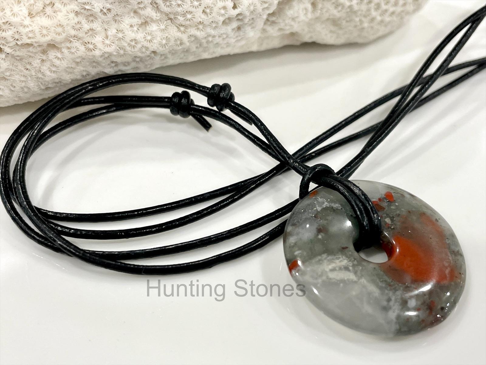 Unisex Natural African Bloodstone Gemstone Necklace 30mm Genuine Leather – slide adjustable