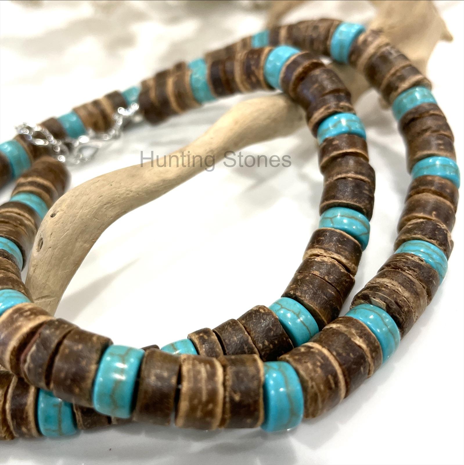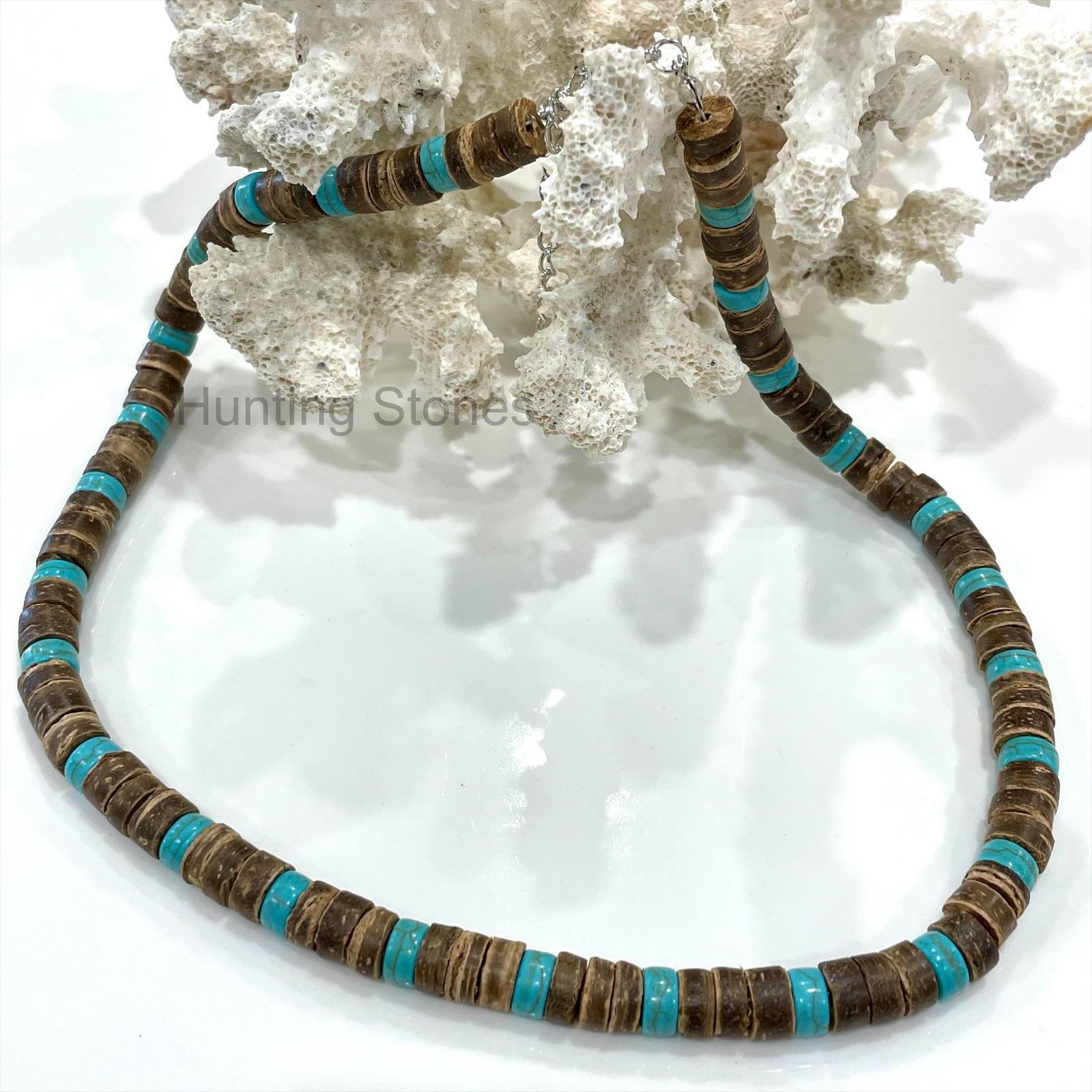 Unisex Natural Coconut and Howlite Stone Heishi Bead Necklace e