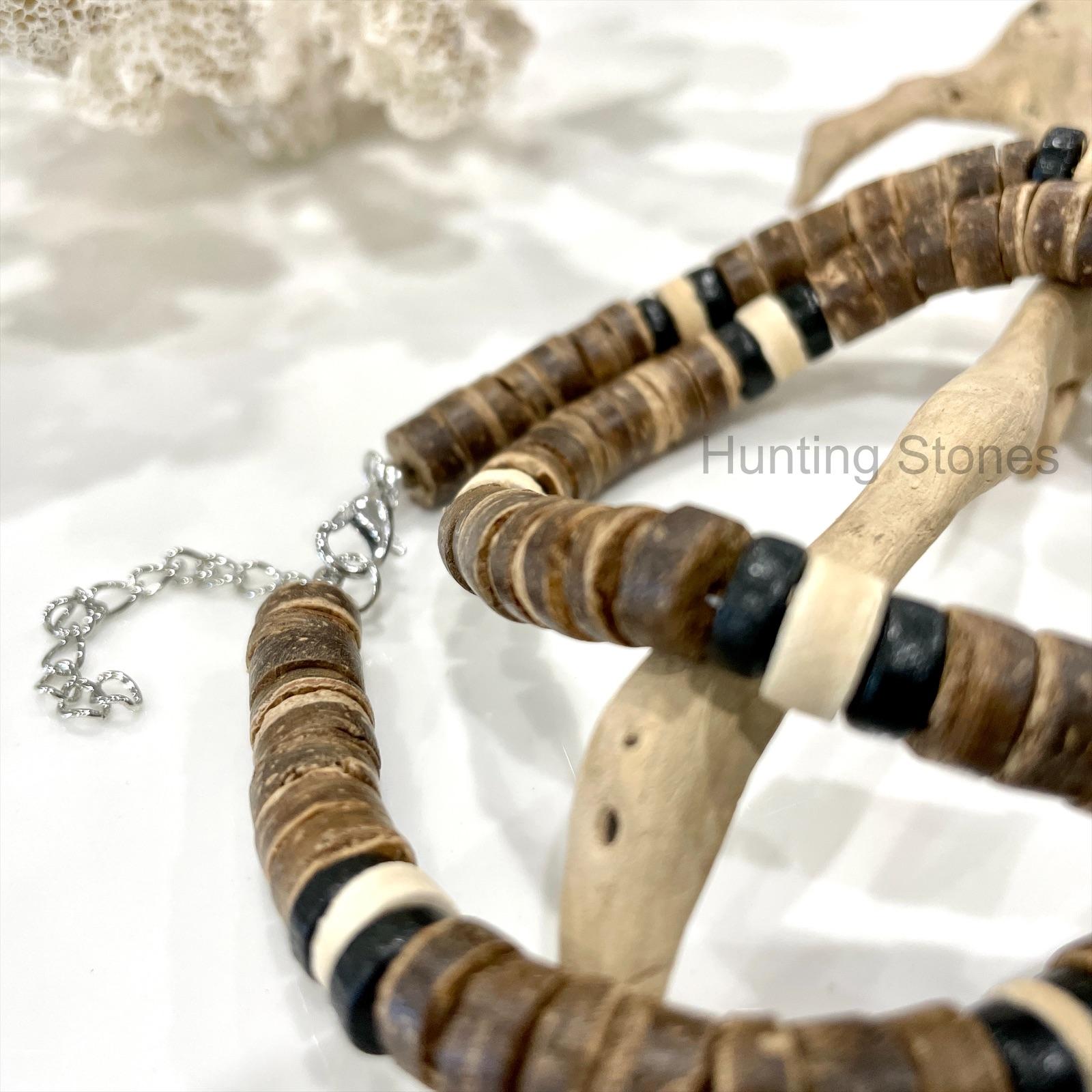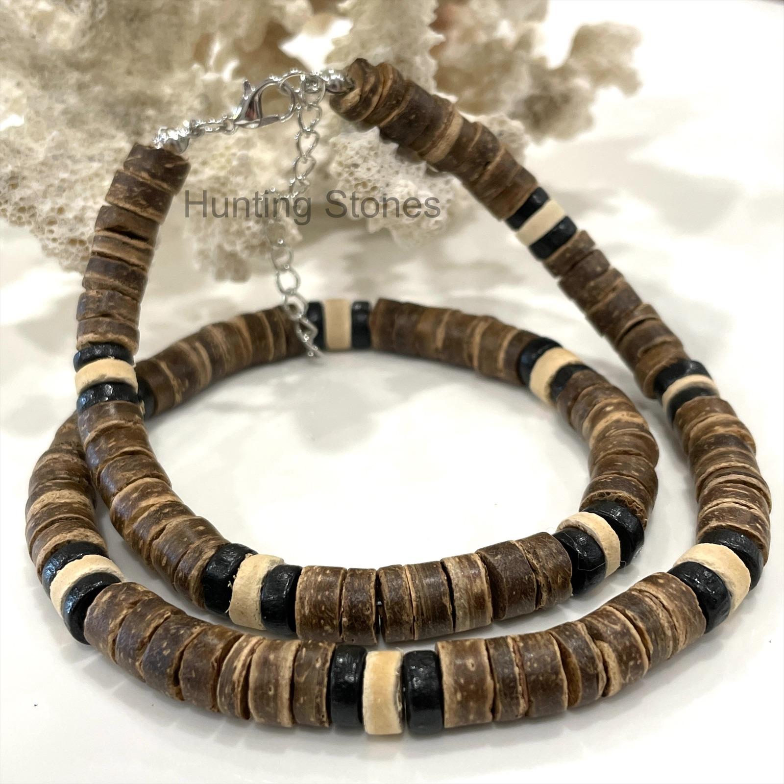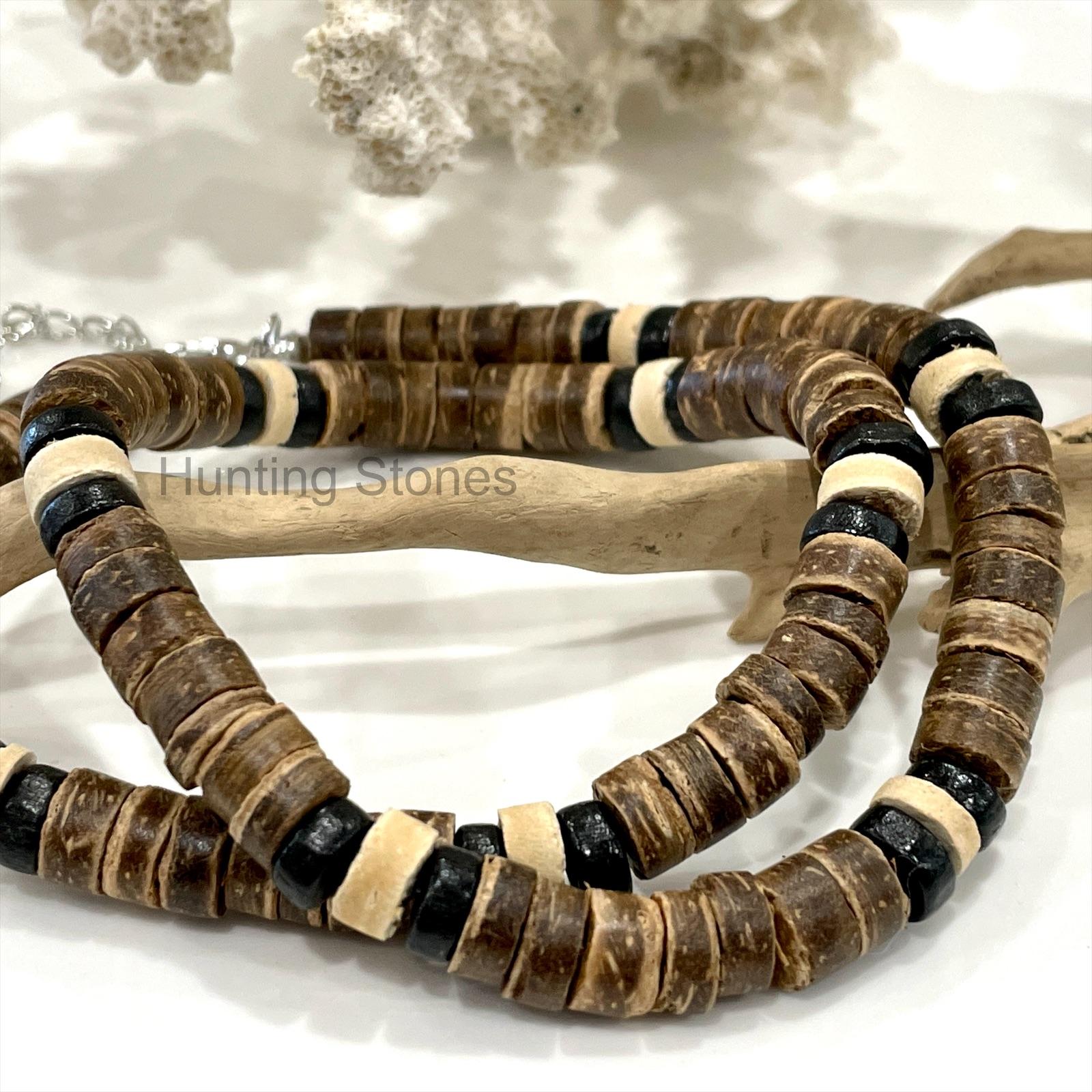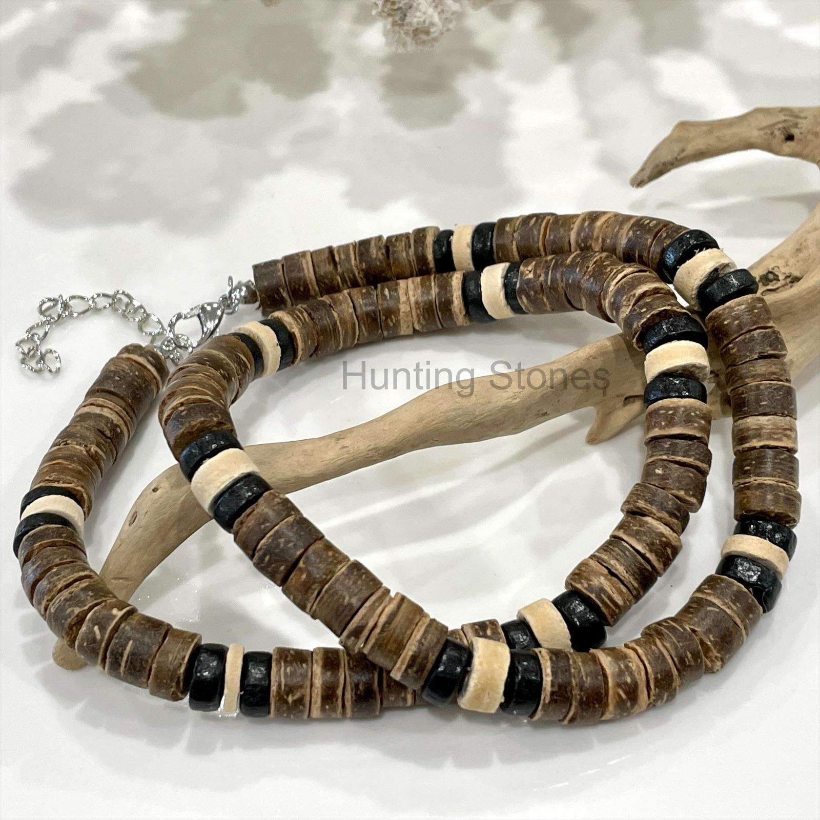 Unisex Natural Coconut Shell and Wood Heishi Bead Necklace 8mm Beads b