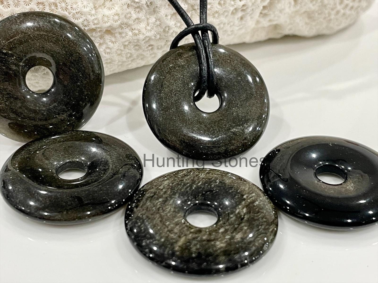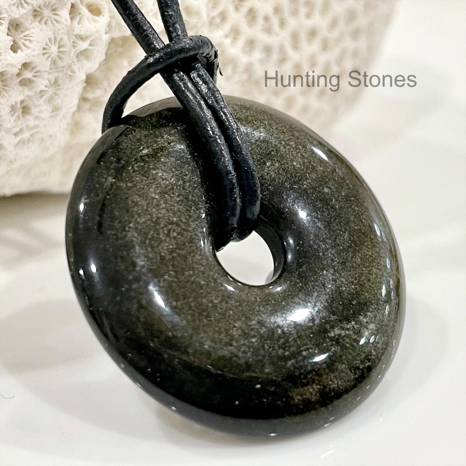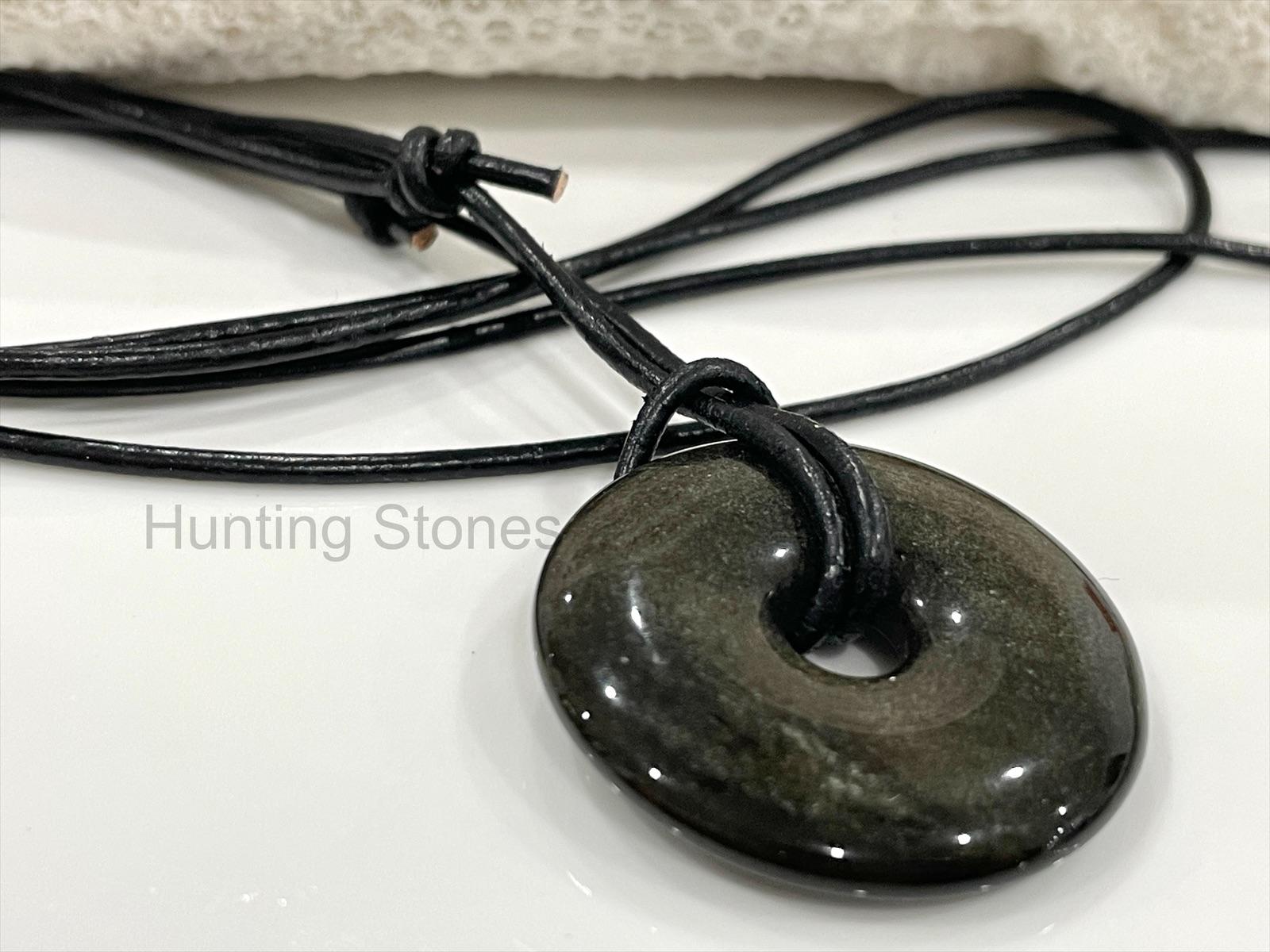 Unisex Natural Golden Obsidian Gemstone Necklace 30mm Genuine Leather – slide adjustable