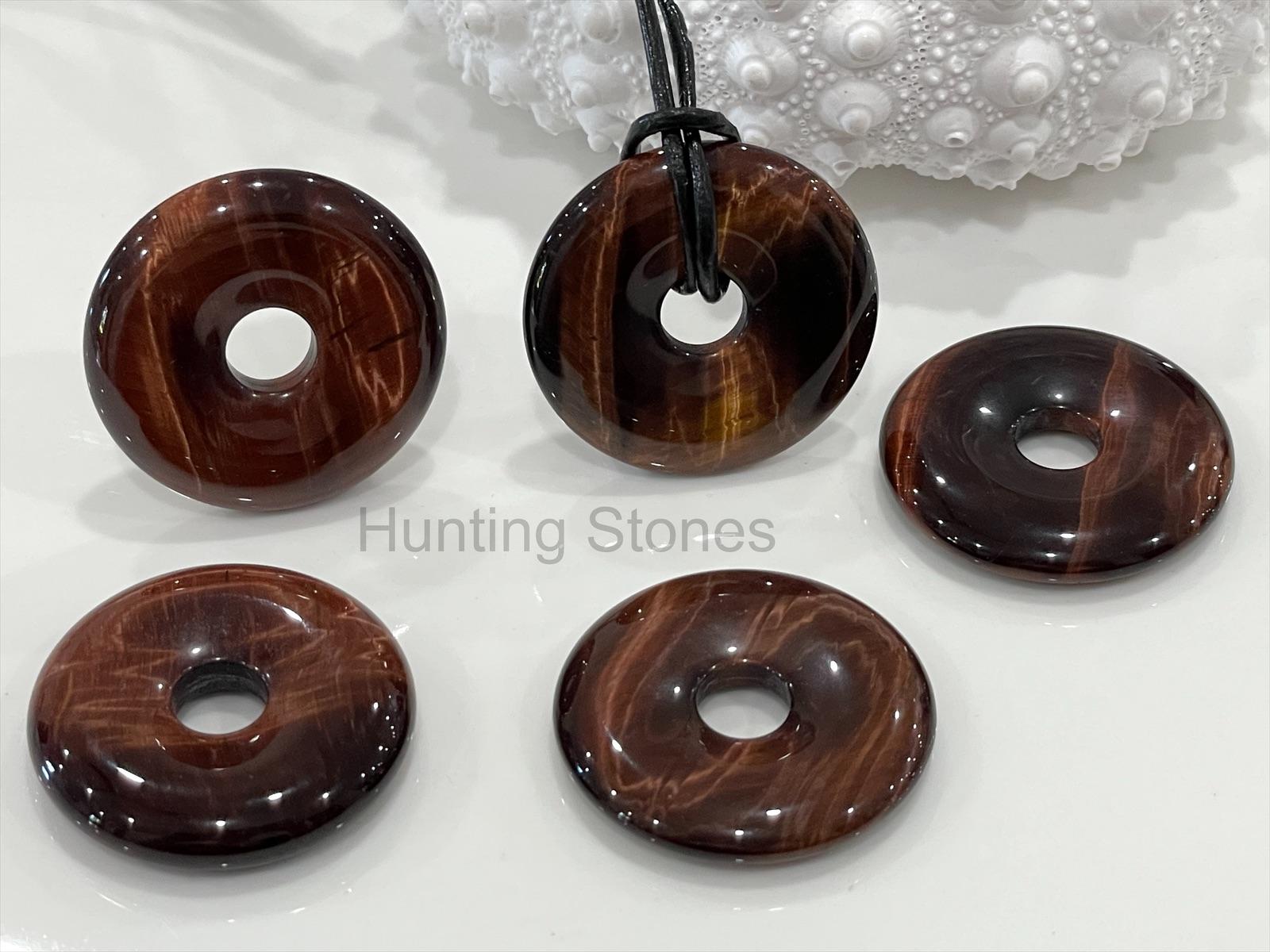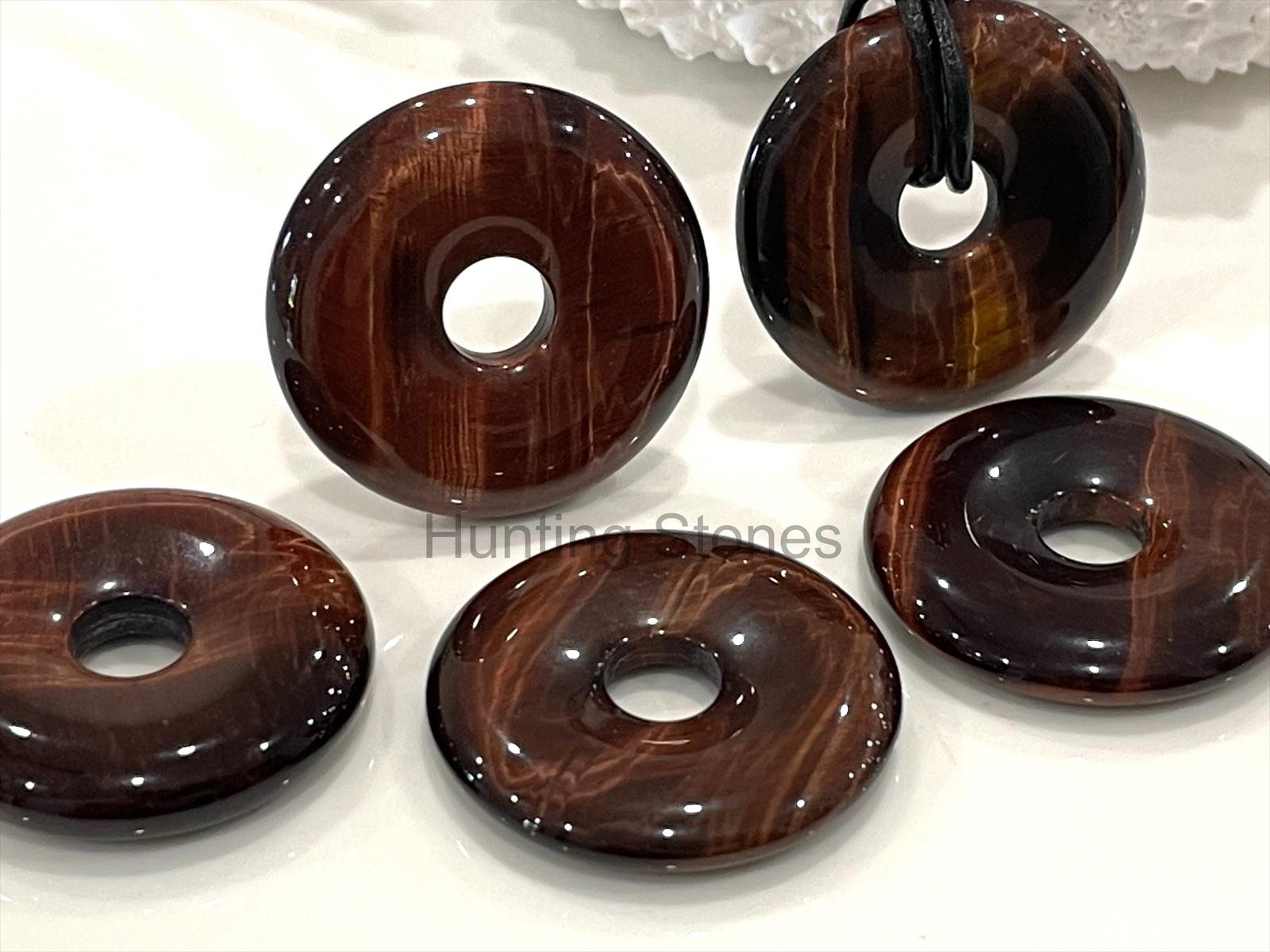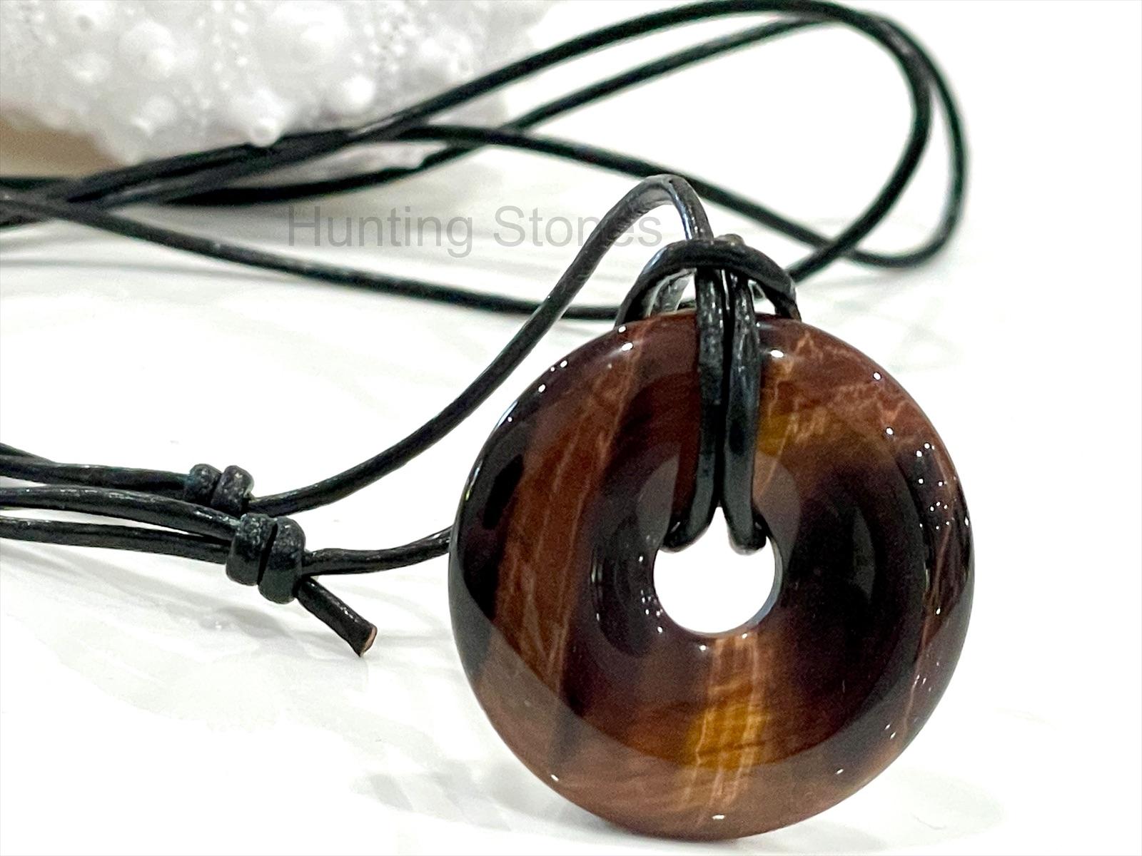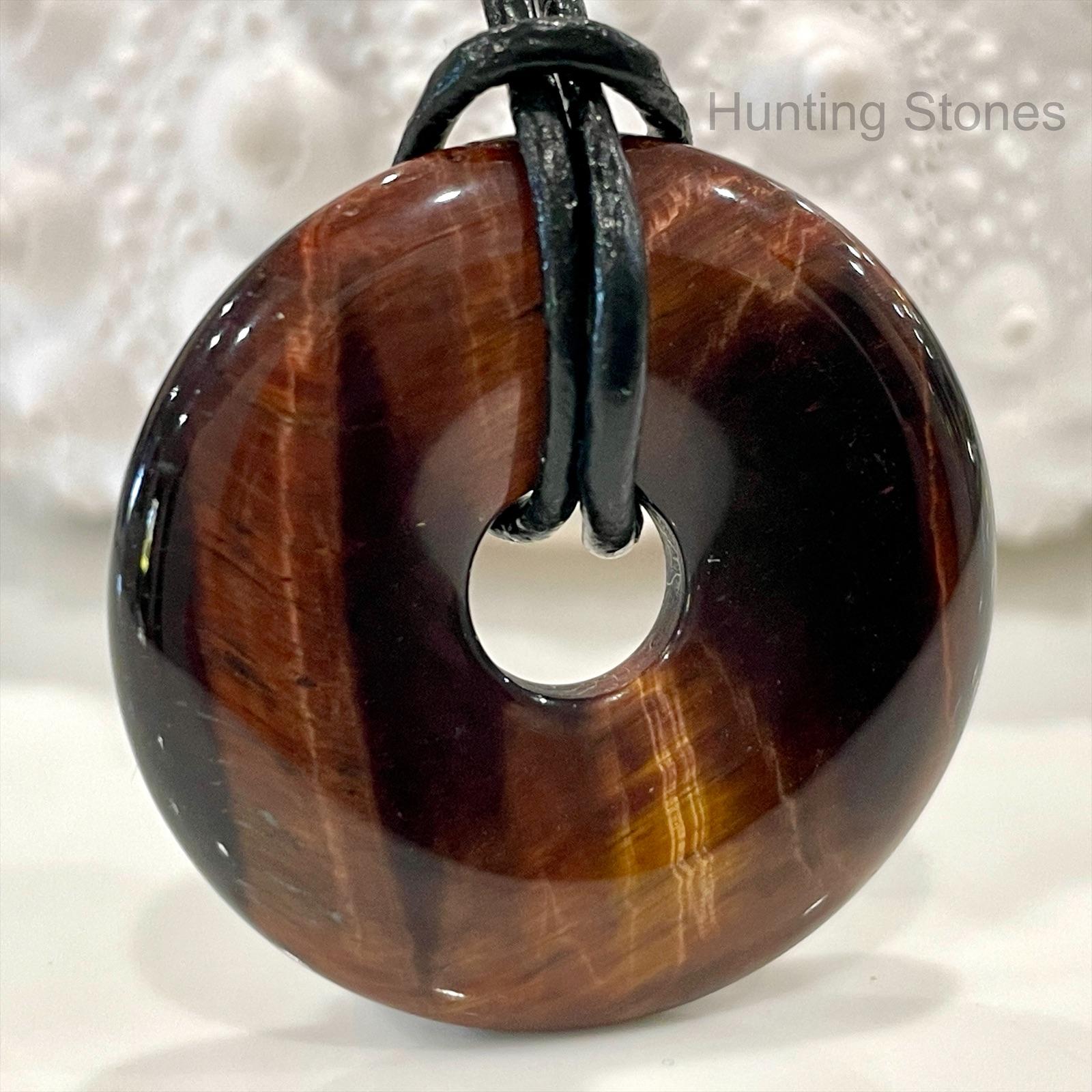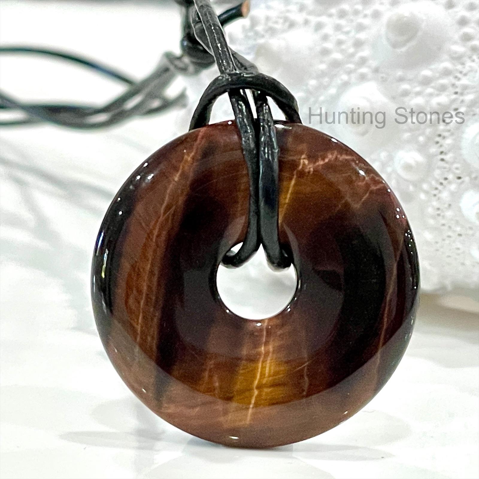 Unisex Natural Red Tigers Eye Gemstone Genuine Leather Necklace 30mm – slide adjustable- Strength Protection Focus Grounding