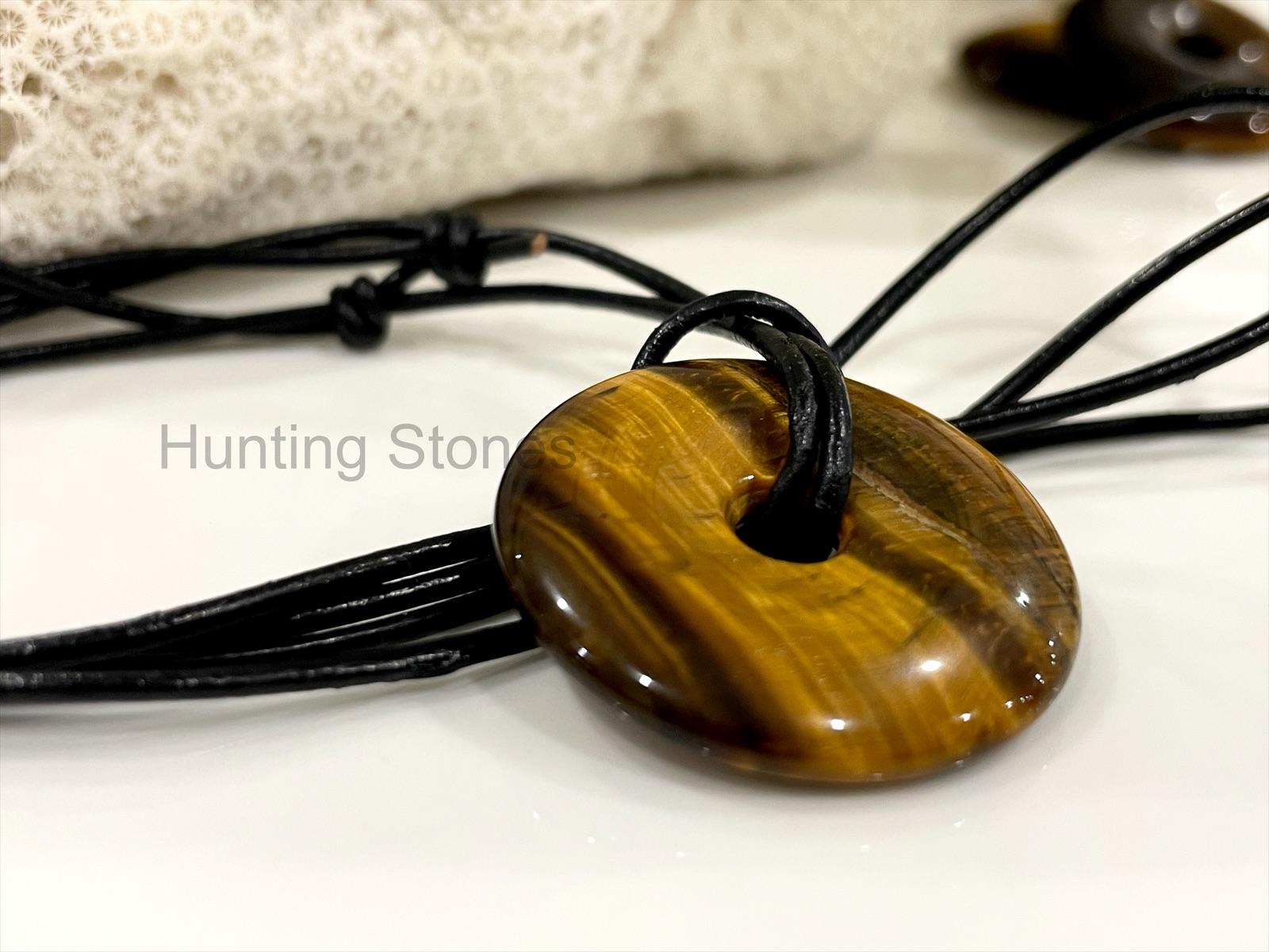 Unisex Natural Tigers Eye Gemstone Genuine Leather Necklace