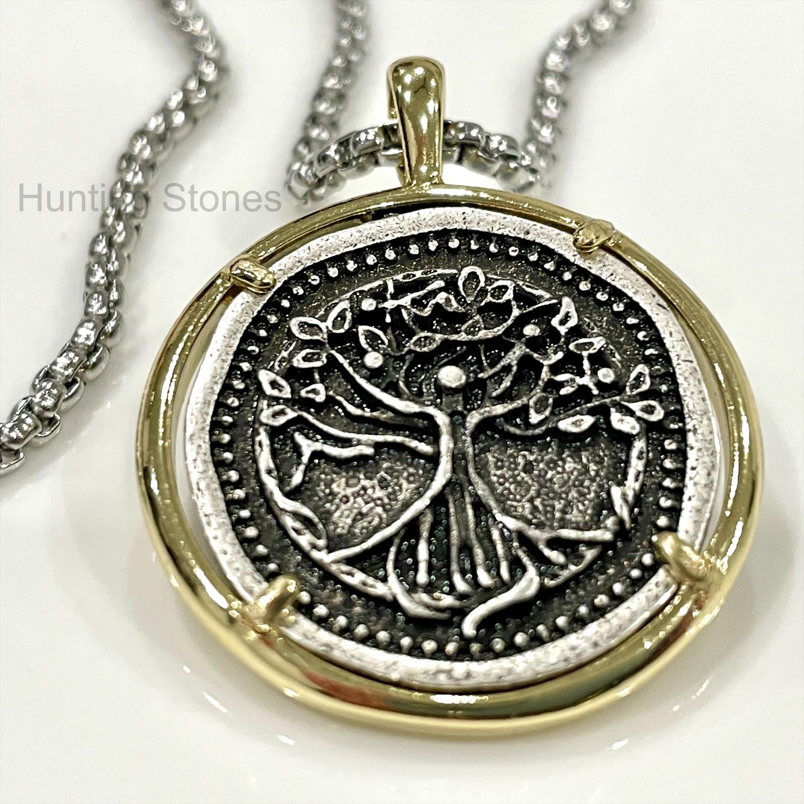 Unisex Sacred Celtic Tree Of Life Coin Necklace