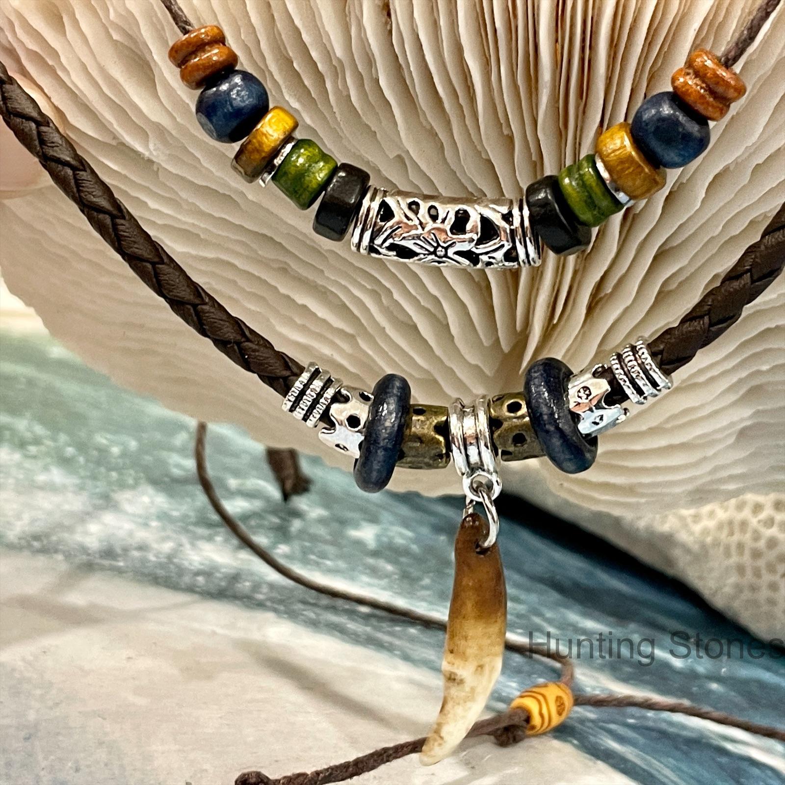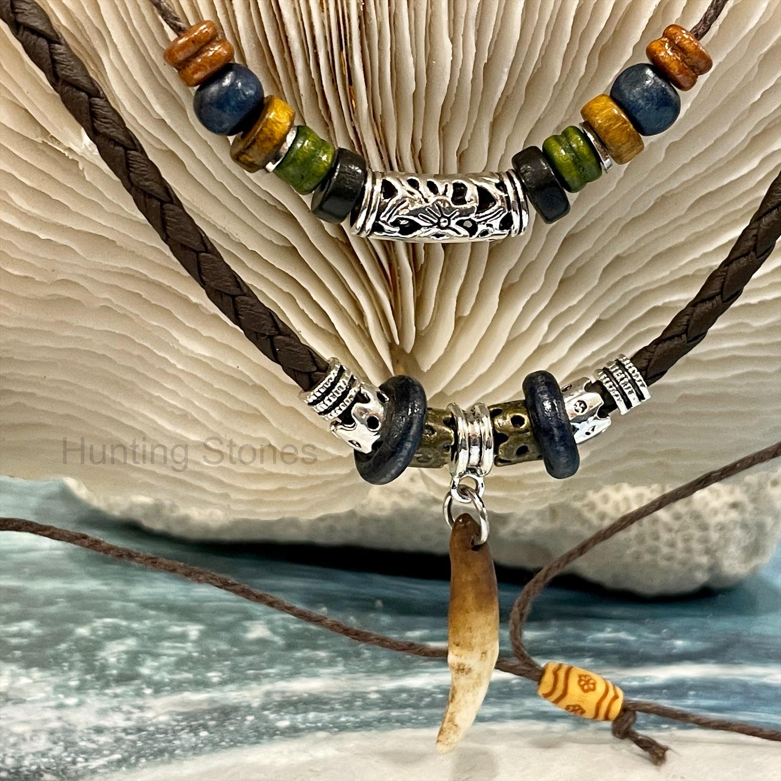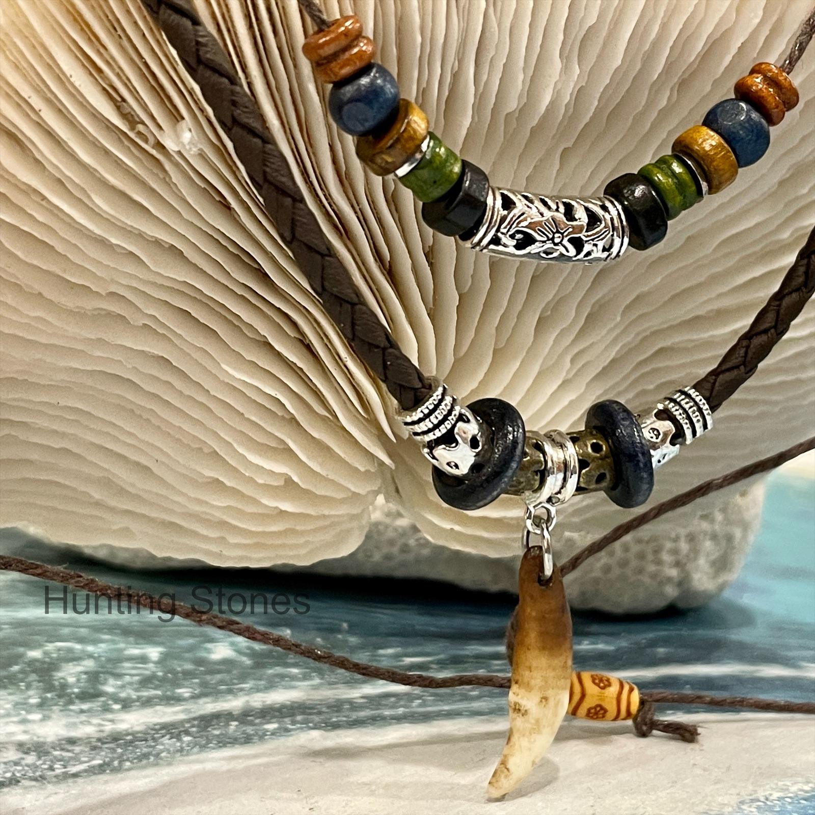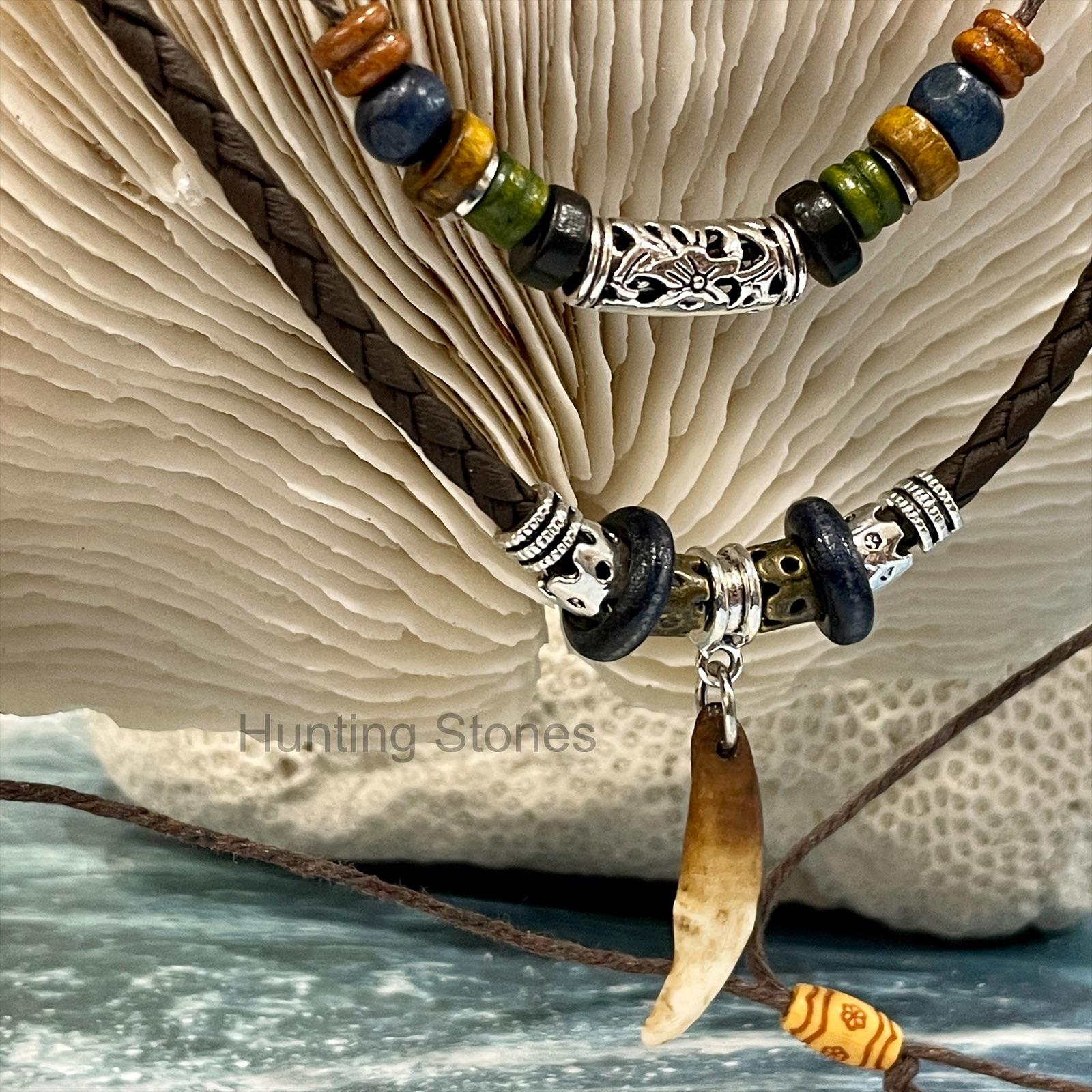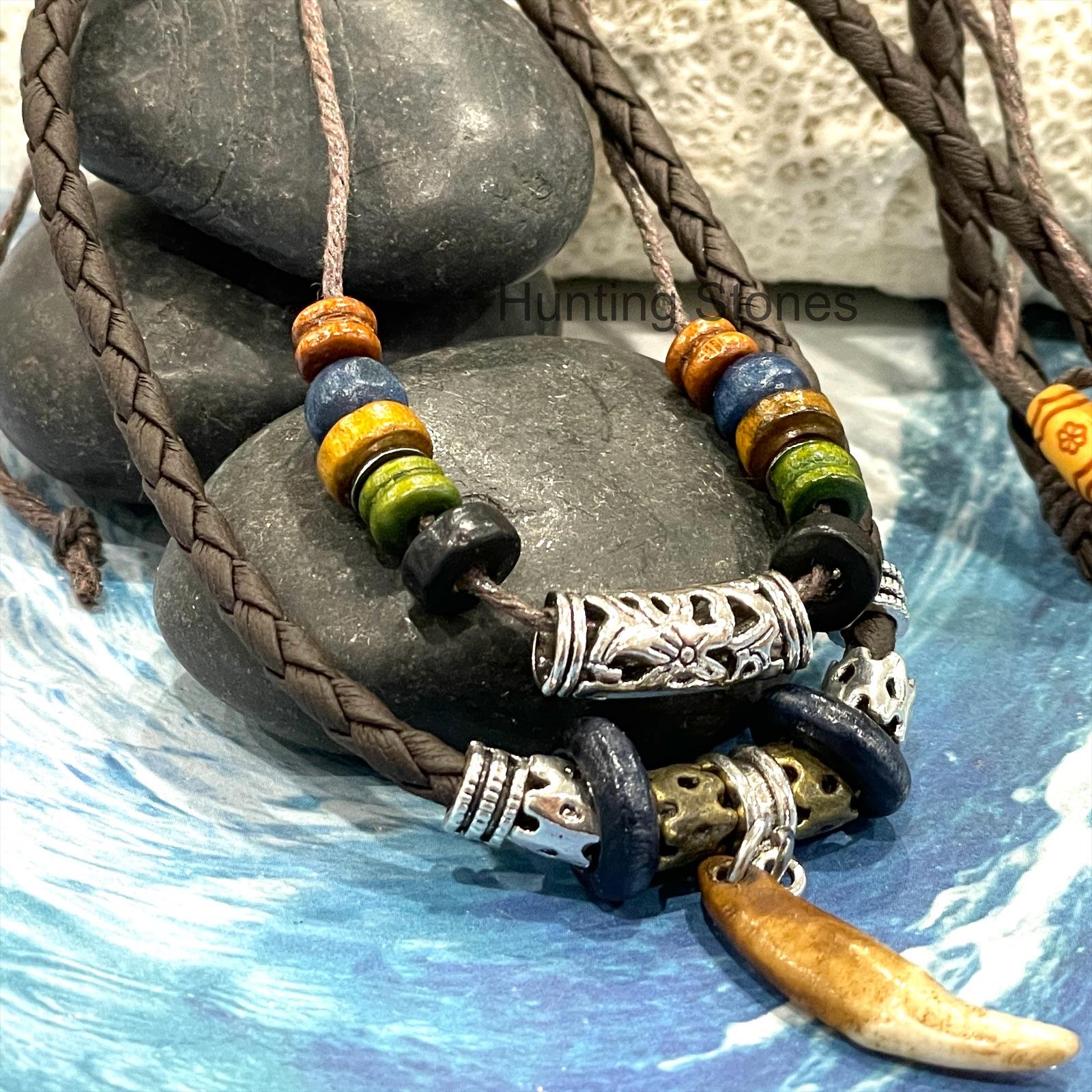 Cool Unisex Wolf Tooth Brown Braided Necklace – 46 to 82cm adjustable