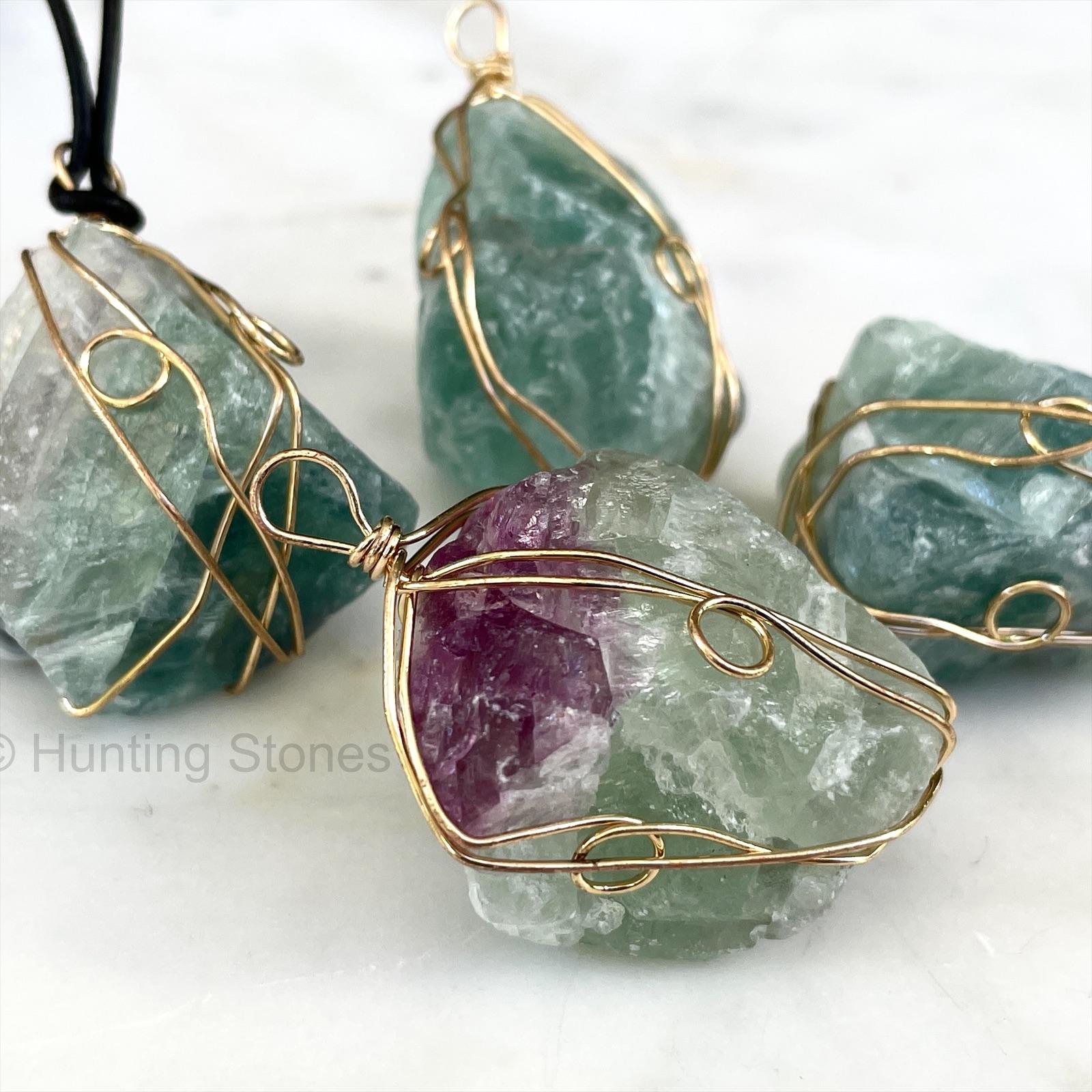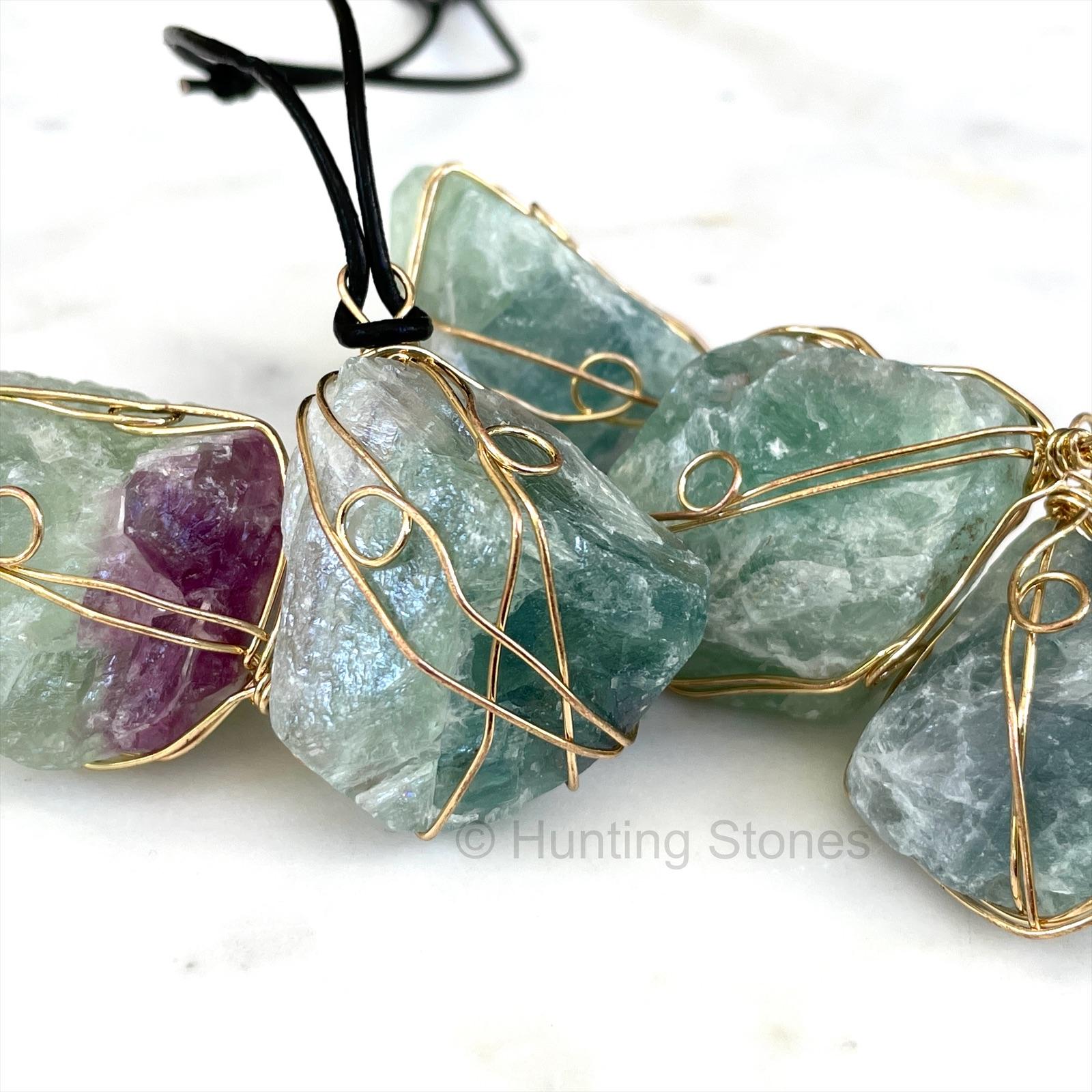 Natural Fluorite Crystal Wire Wrapped Necklace