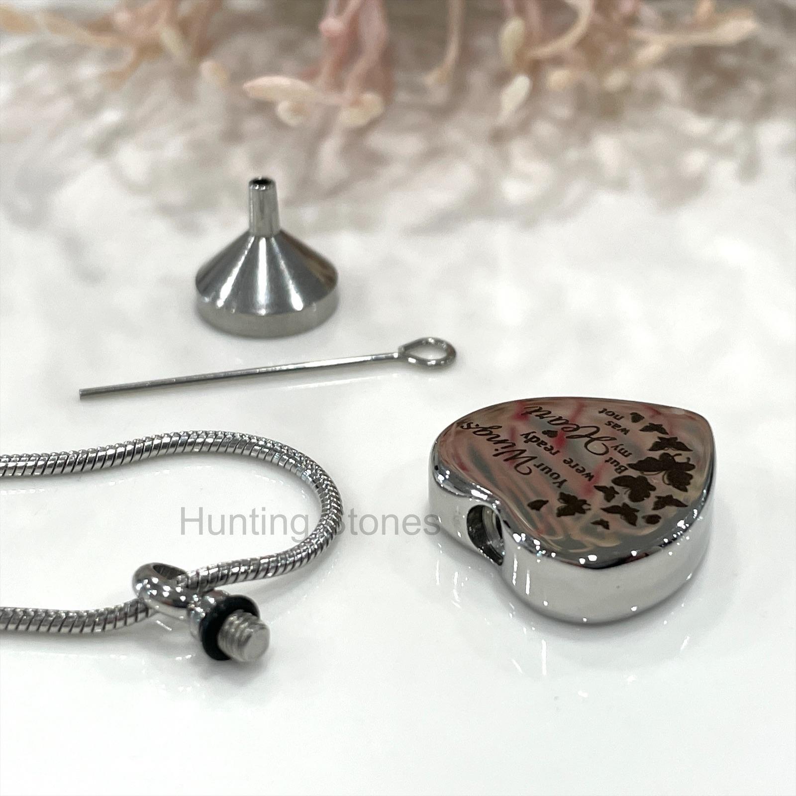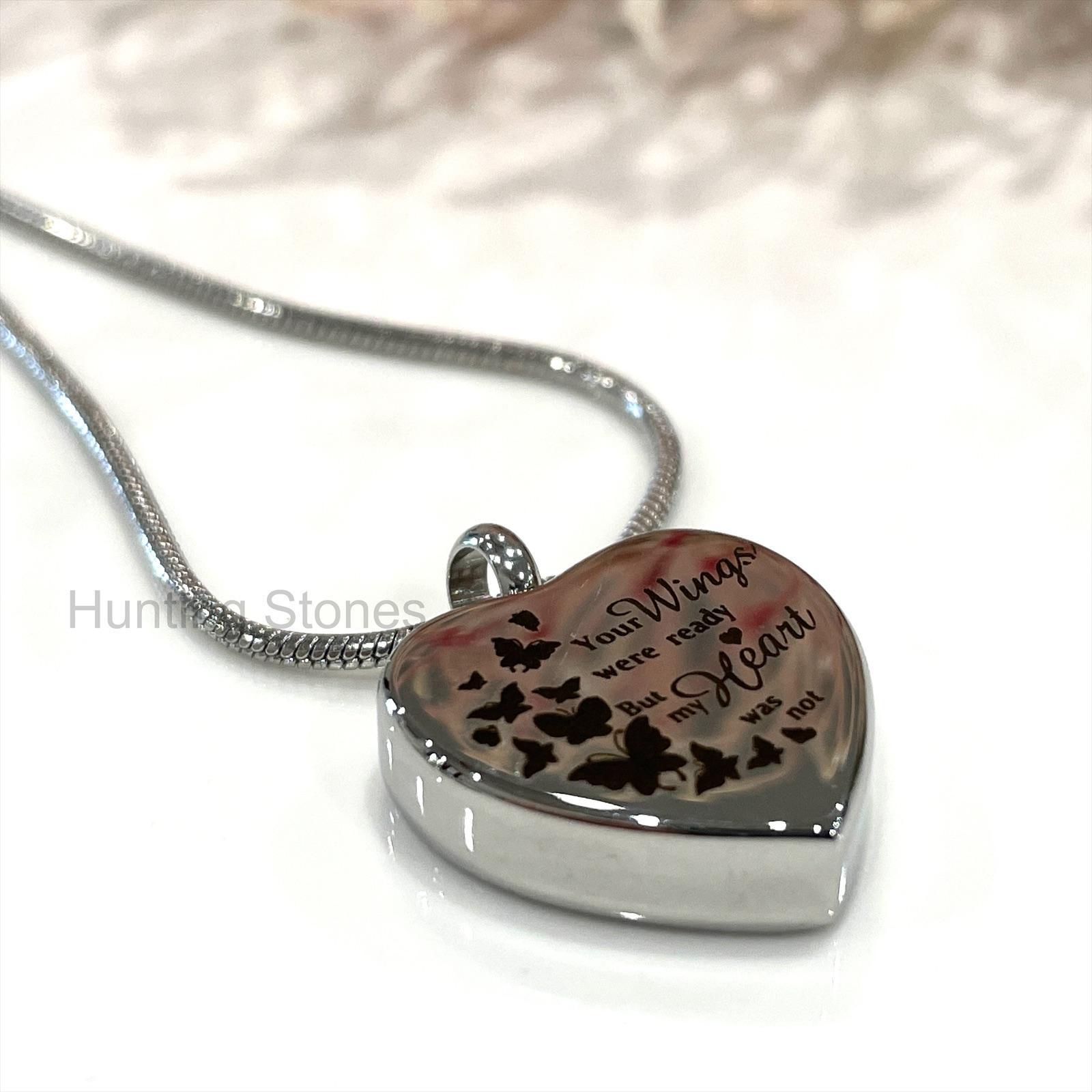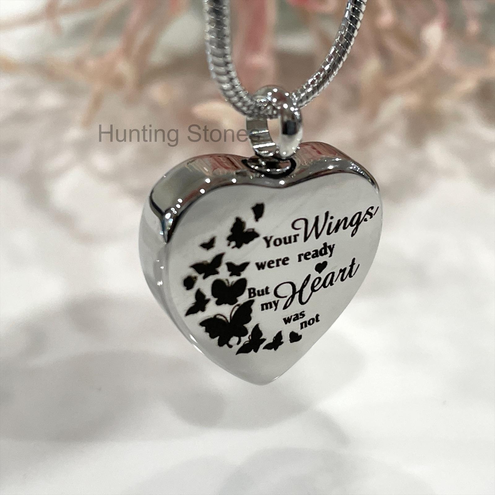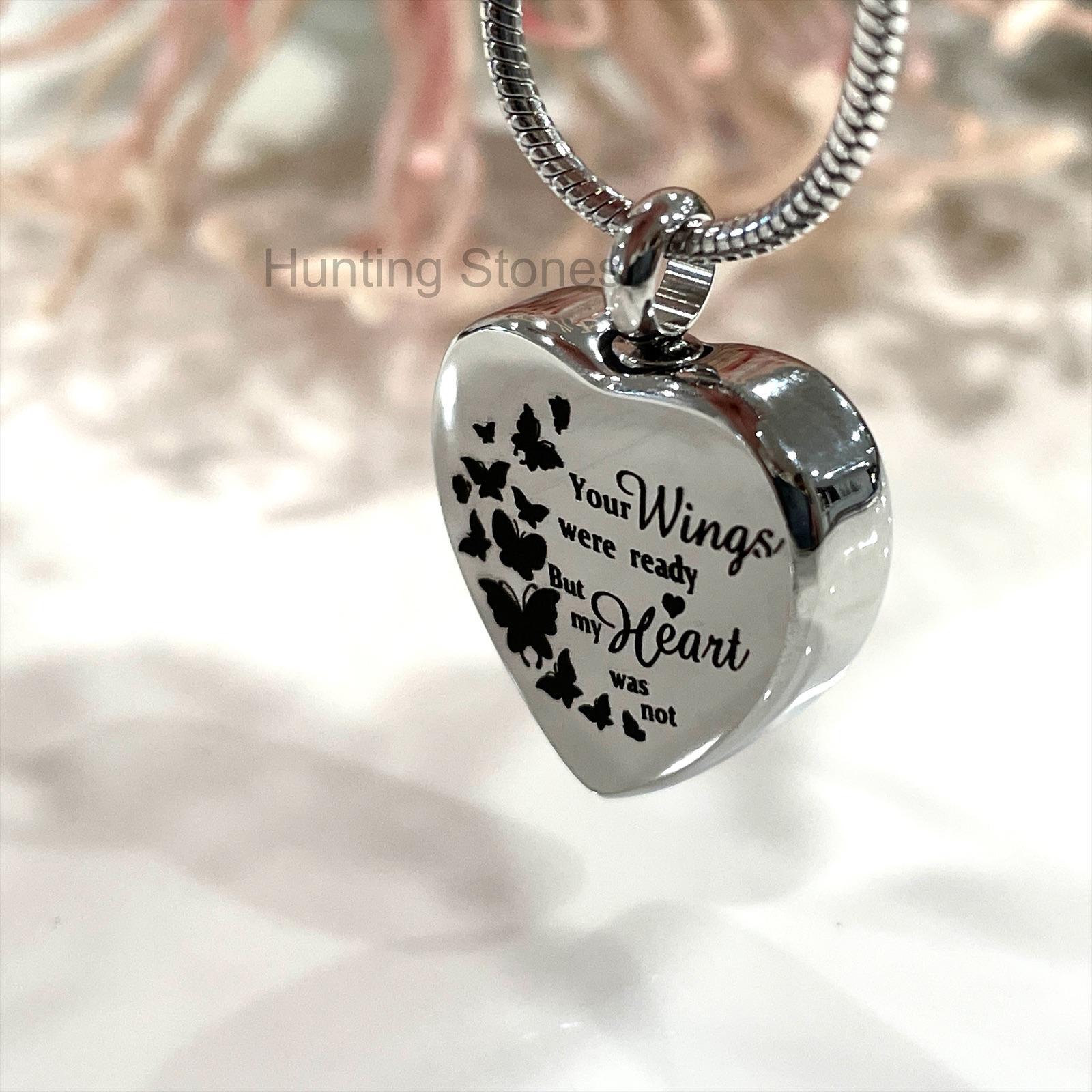 Your Wings Were Ready My Heart Was Not Butterfly Heart Memorial Cremation Ashes Urn Pendant Necklace – Stainless Steel 20mm